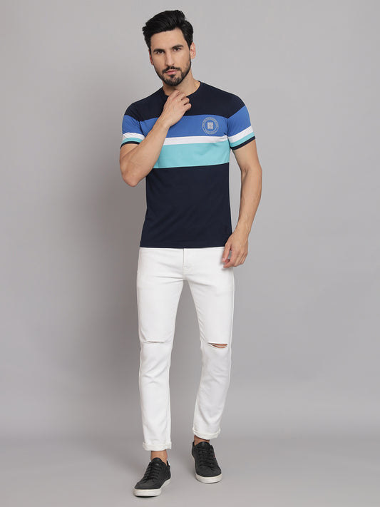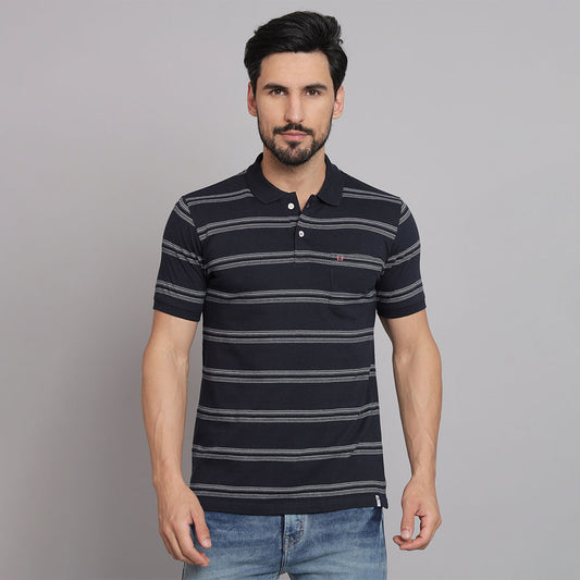 This White Black Stripe Round Neck T-shirt from our store is for all the men...