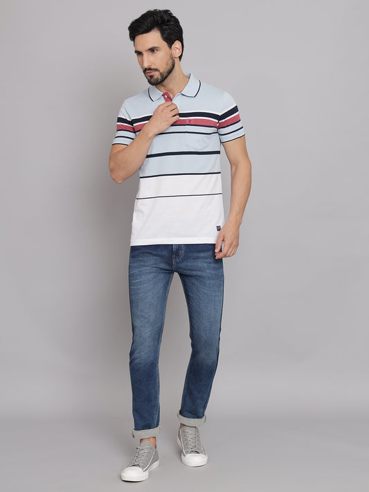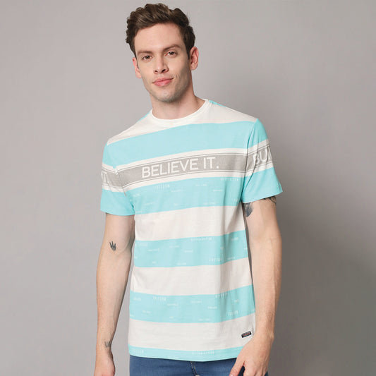 This Sky White Stripers Round neck T-shirt from our store is made from 100% Cotton....