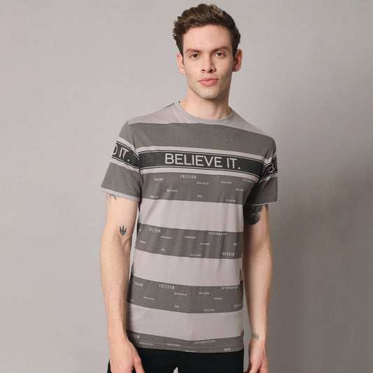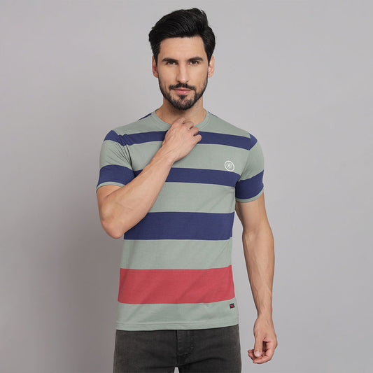 Indulge in the world of premium cotton men’s T-shirts and add this Olive Gray striper...