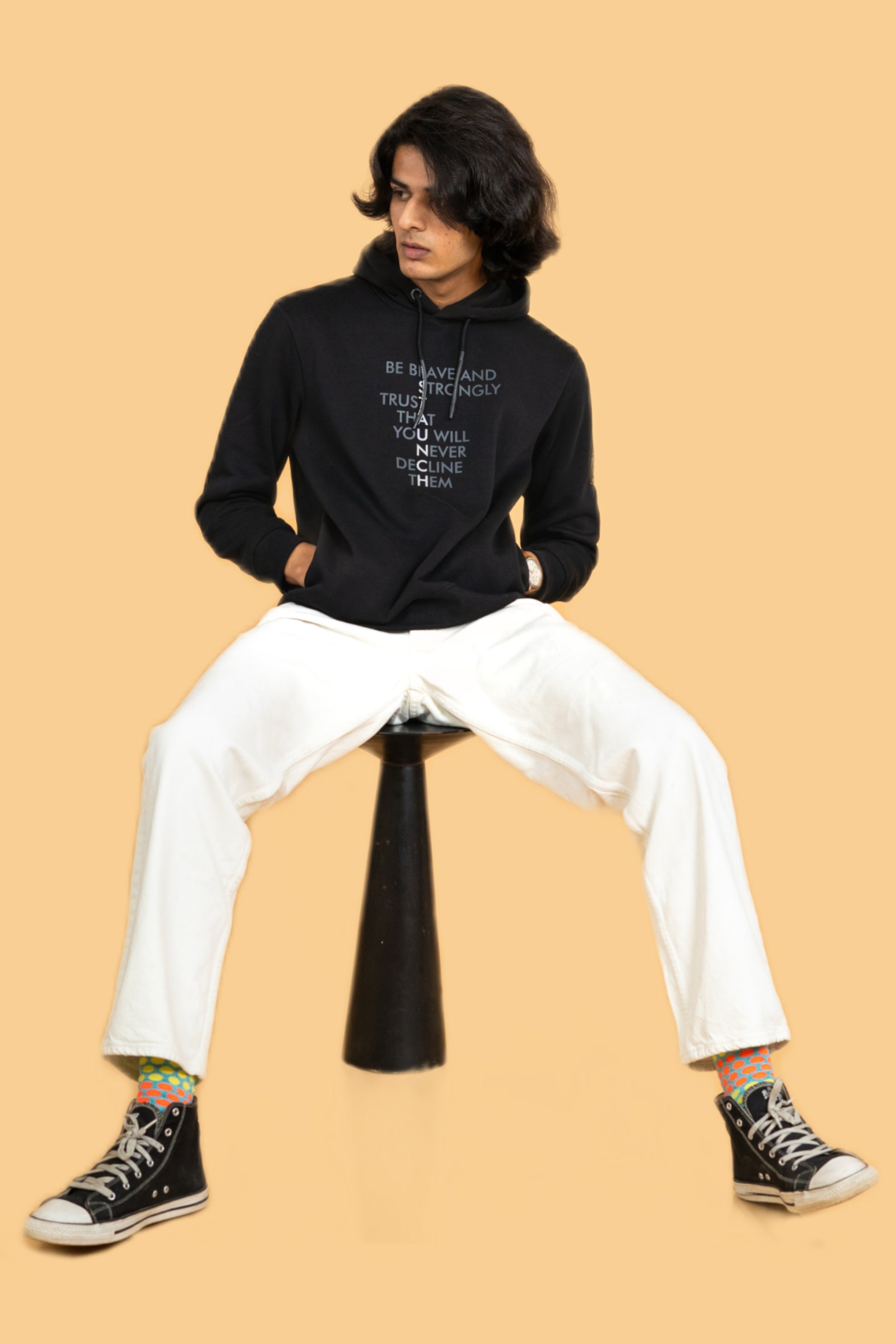 Unleash your casual cool with our Black Hoodie . The breathable cotton fabric ensures a relaxed fit, making it the ultimate go-to for a laid-back, yet trendy, everyday look.