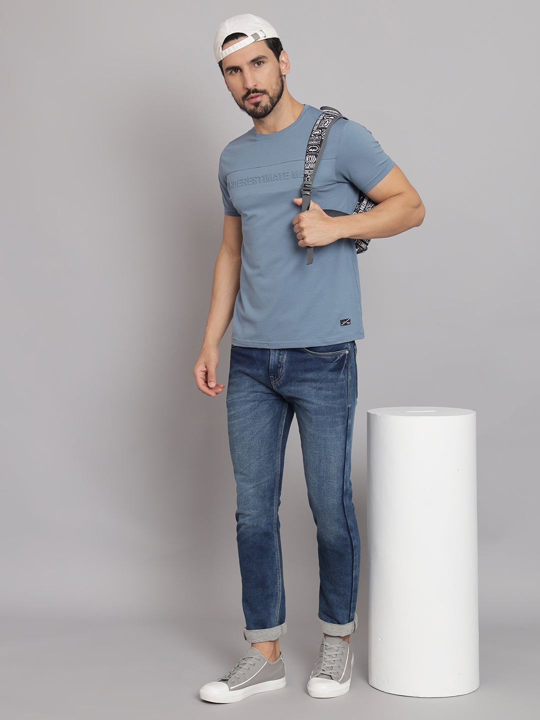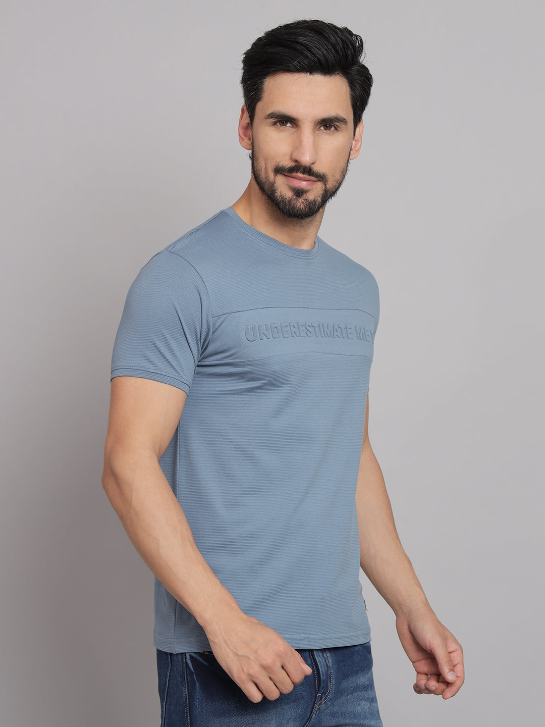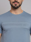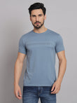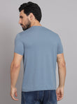 Include a dash of style to your wardrobe with this Blueish Gray Round neck T-shirt. This T-shirt is crafted with 100% cotton fabric, and it features a perfect round neckline and half sleeves along with regular fitting. Pair it with light denim and canvas shoes to compliment it.