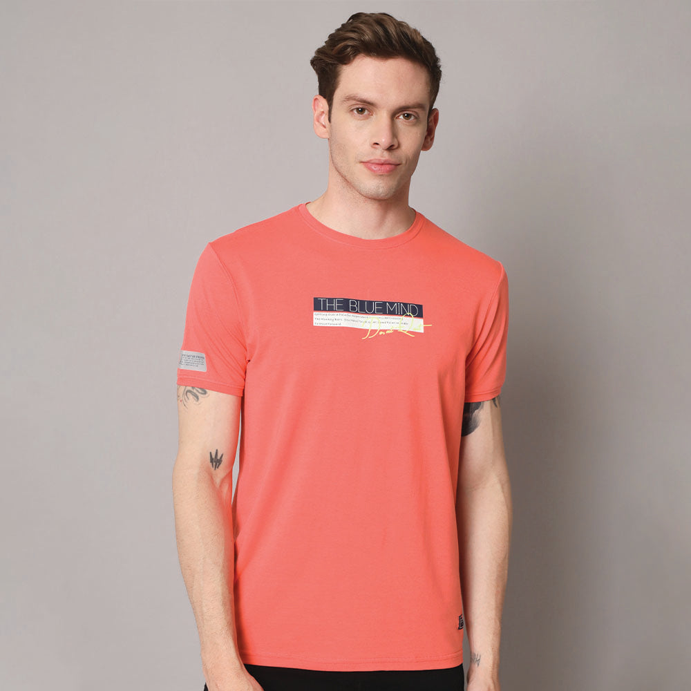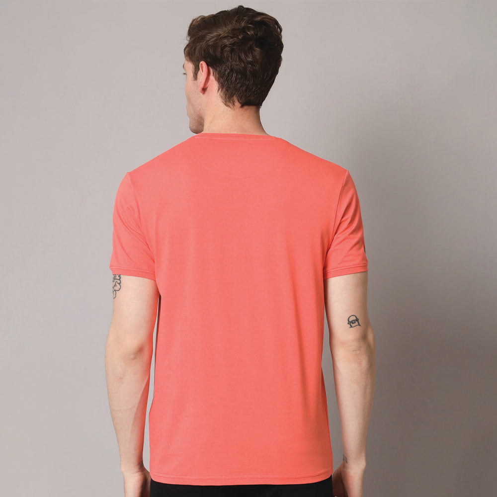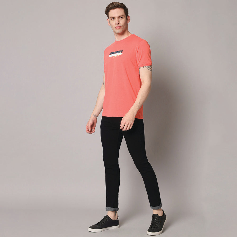 Command attention in this Coral Rose printed round neck T-shirt. A perfect round neckline and half-sleeves and cotton fabric provide you with a perfect combination of comfort and fashion. Pair it with denim or chinos and canvas shoes for an urbane look.