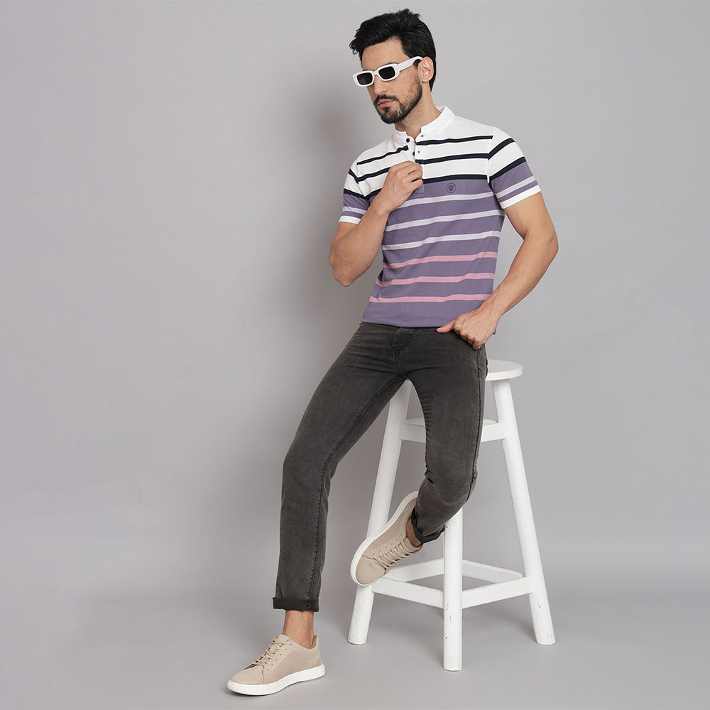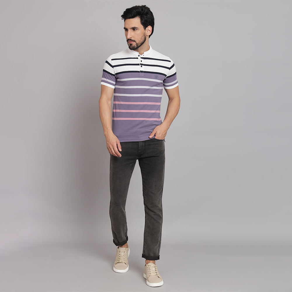 This T-shirt is made of a rich cotton blend, Which is known for providing you with the ultimate breathability and Slim Fitting gives you all-day comfort and freedom of movement. Stay tuned with our trending Pastel green Pencil striper T-shirts. Pair it with dark blue denim and white casual shoes.