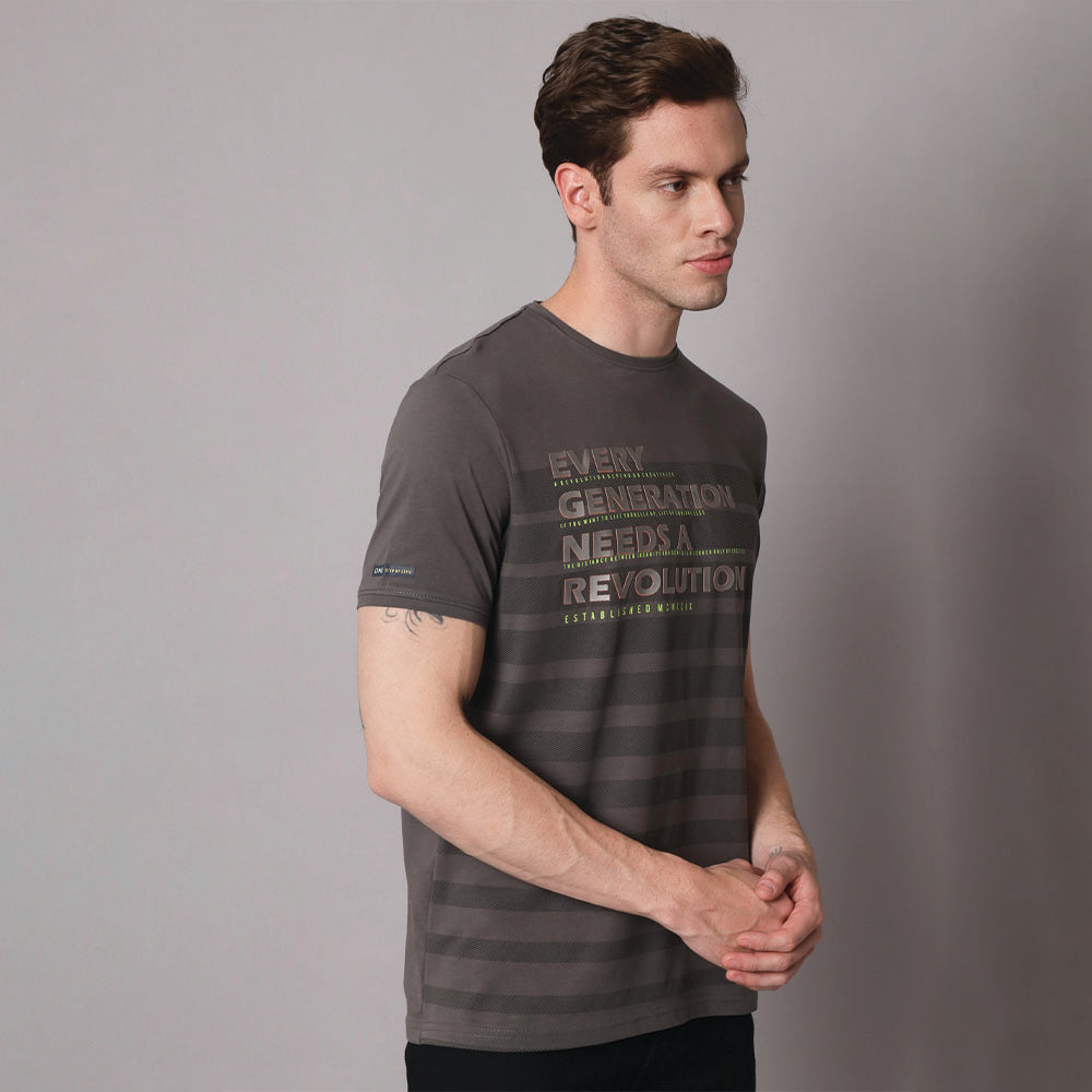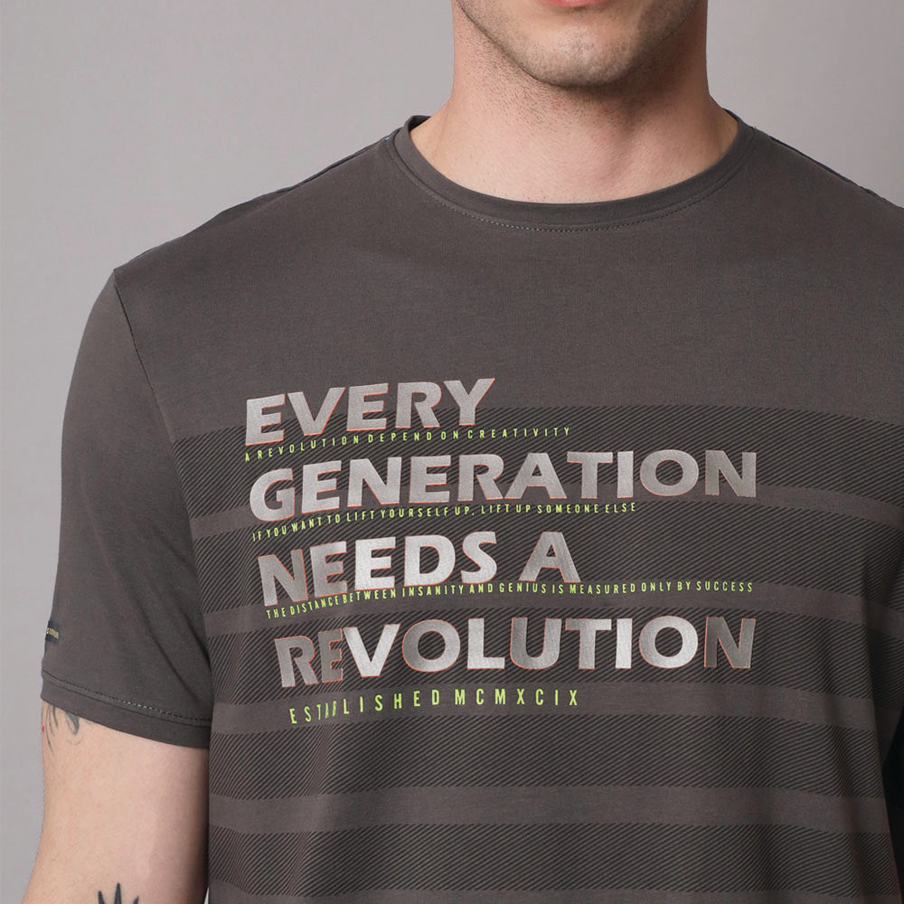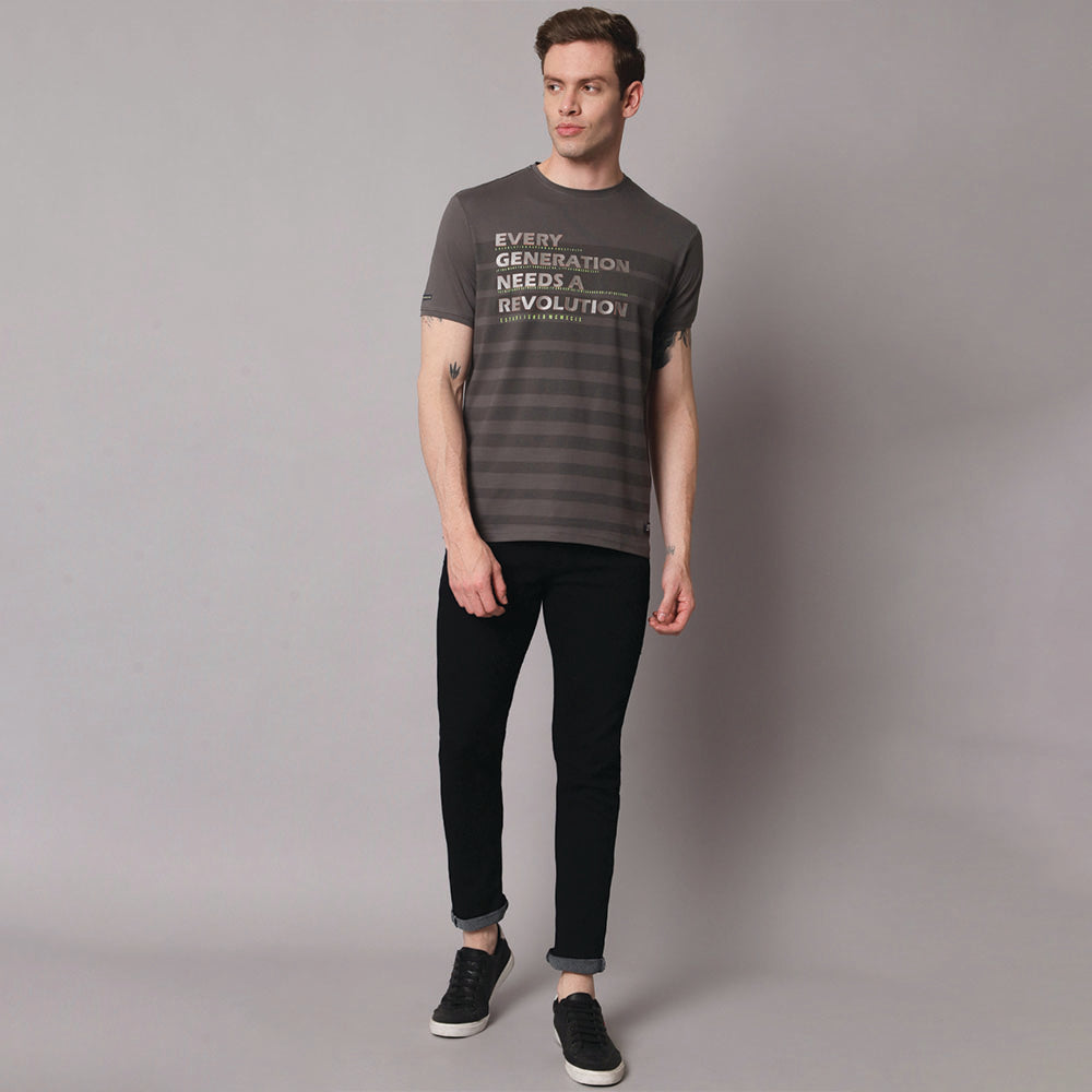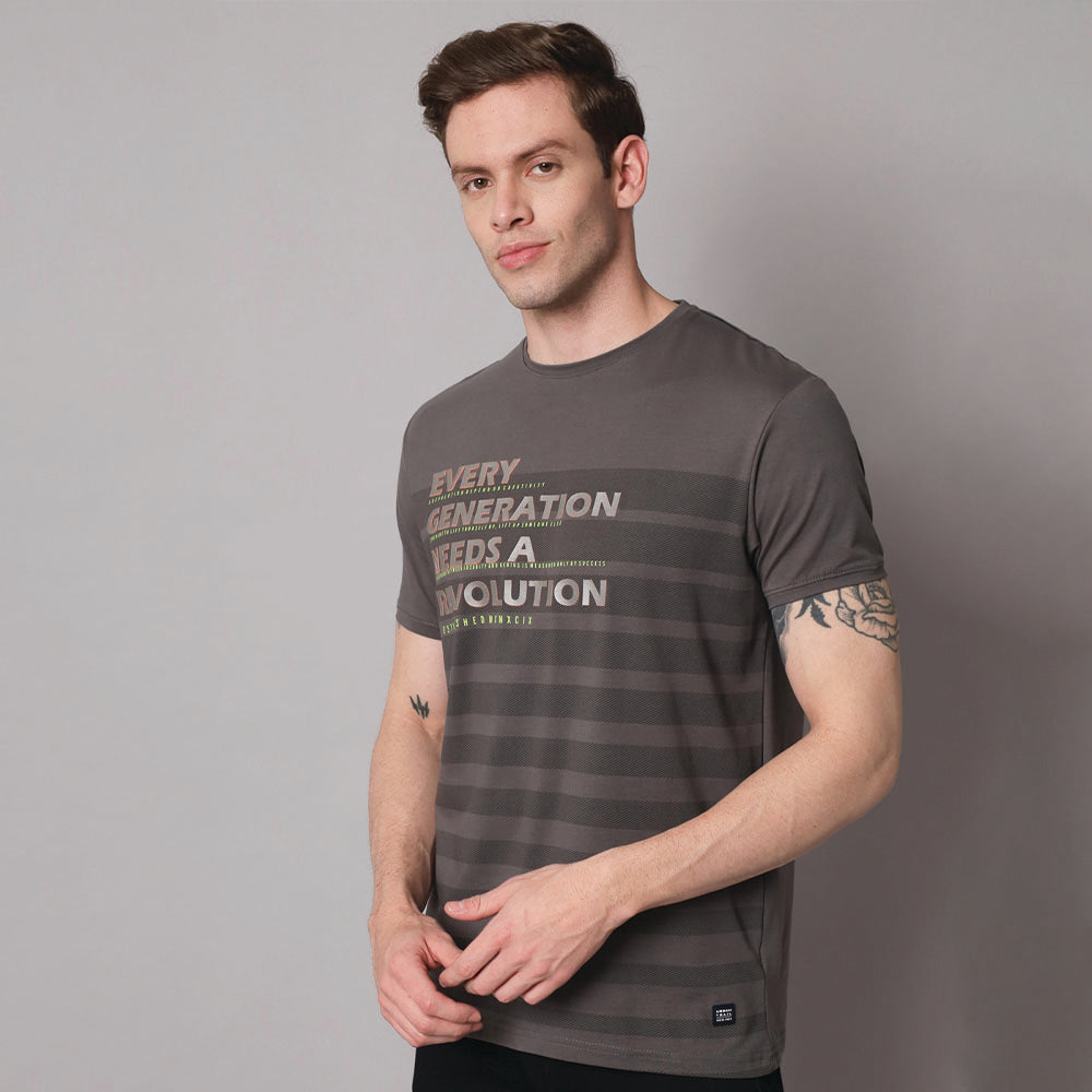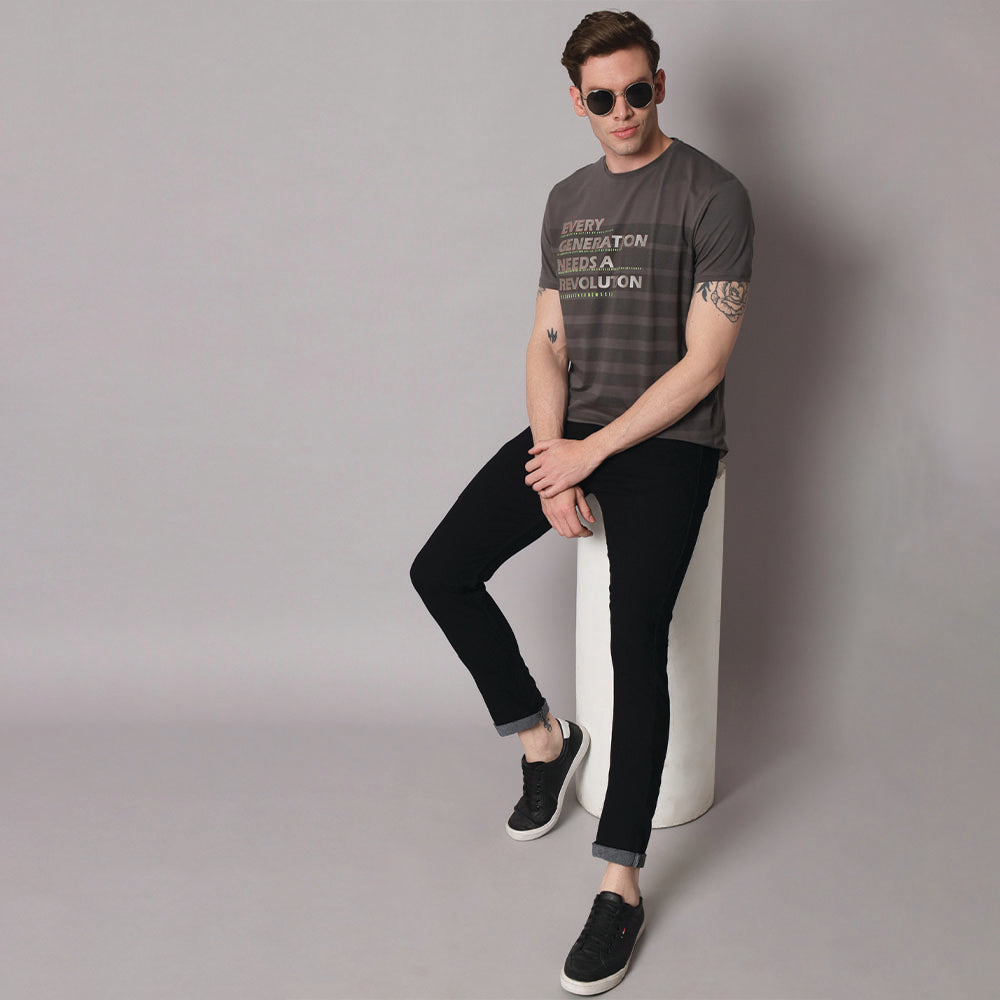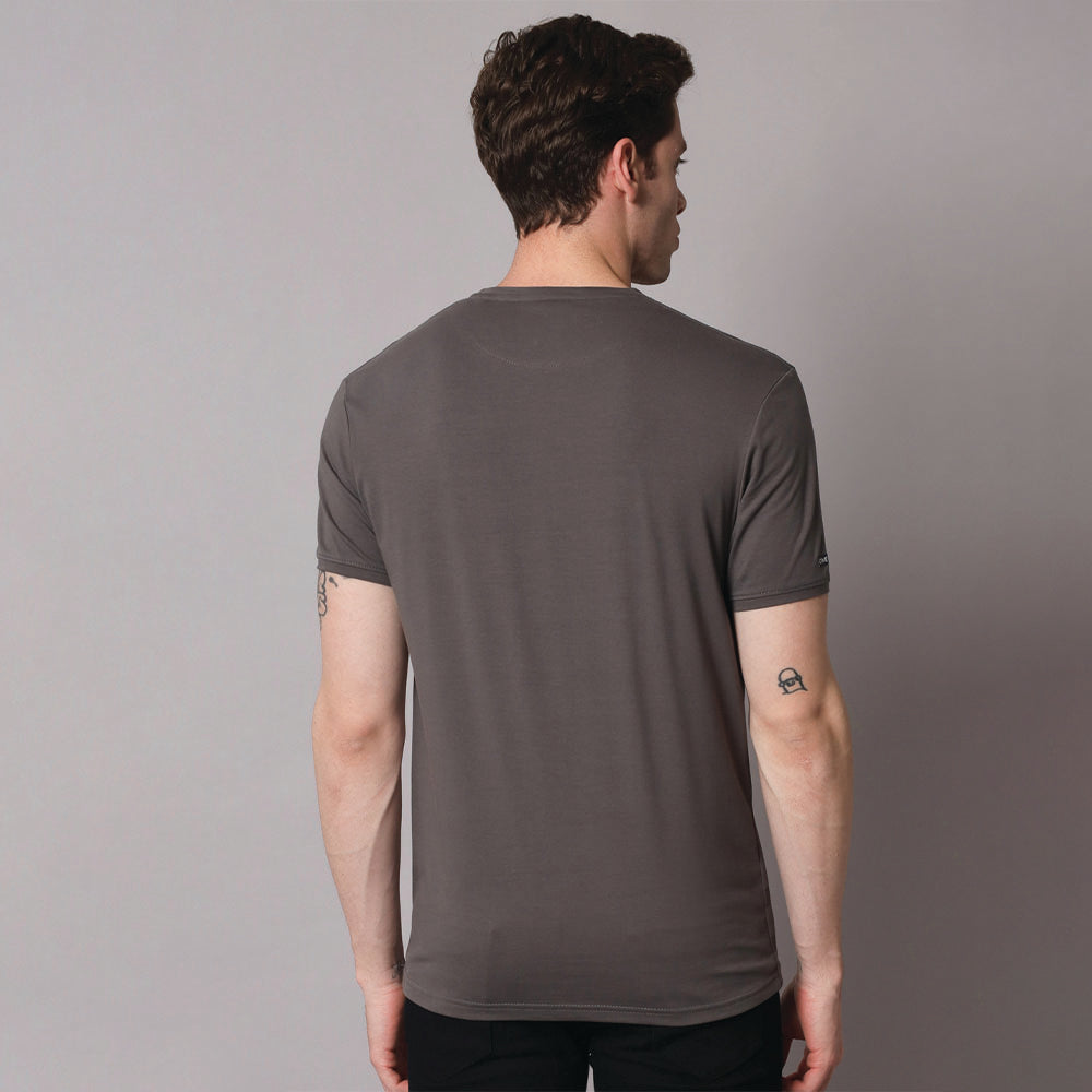 This men’s Iron gray Round Neck T-shirt from our store would be perfectly suitable for your personality. This T-shirt can be worn with black track pants and sports shoes for a perfect gym look.