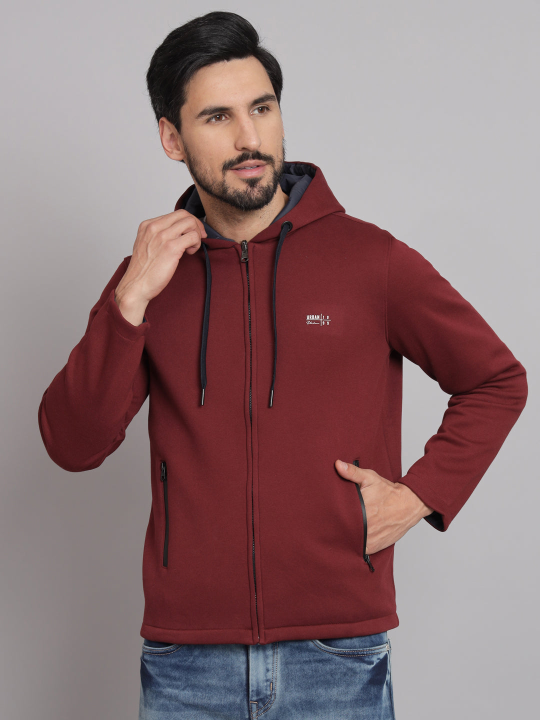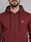 Embrace the versatility of this Maroon Jacket With Front Zipper, designed with a cozy hood, and full sleeves, and crafted from a comfortable cotton blend fabric. Whether you're heading to the gym or running errands, this hoodie keeps you comfortable in style.