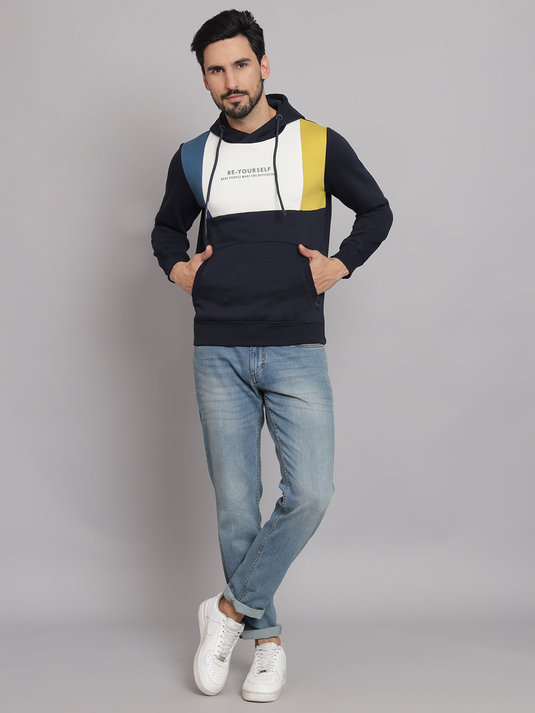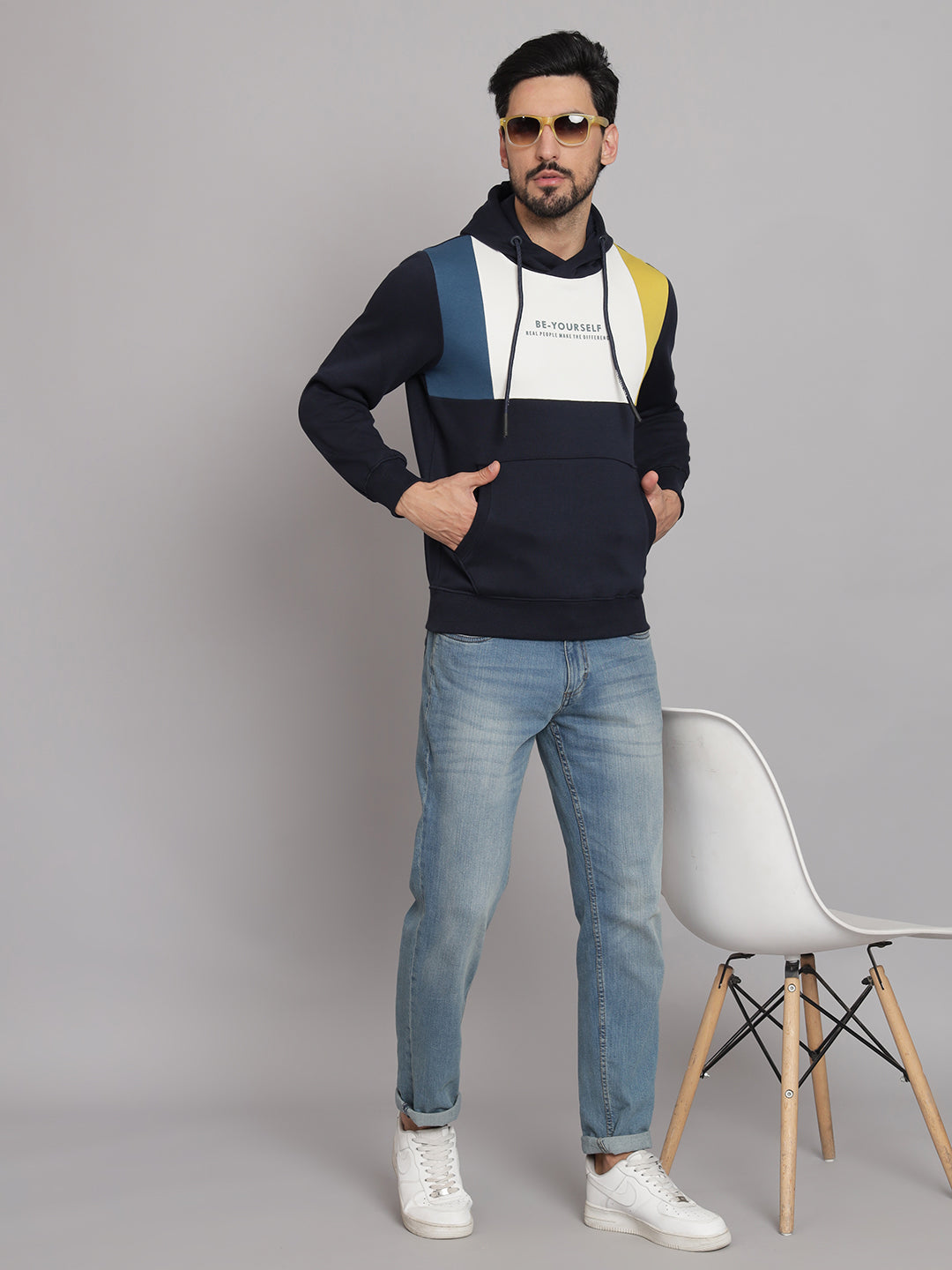 Make a statement with this Navy blue hoodie, featuring a hood crafted from a soft cotton blend material. This timeless design offers both warmth and fashion, making it a reliable choice for your everyday wardrobe.