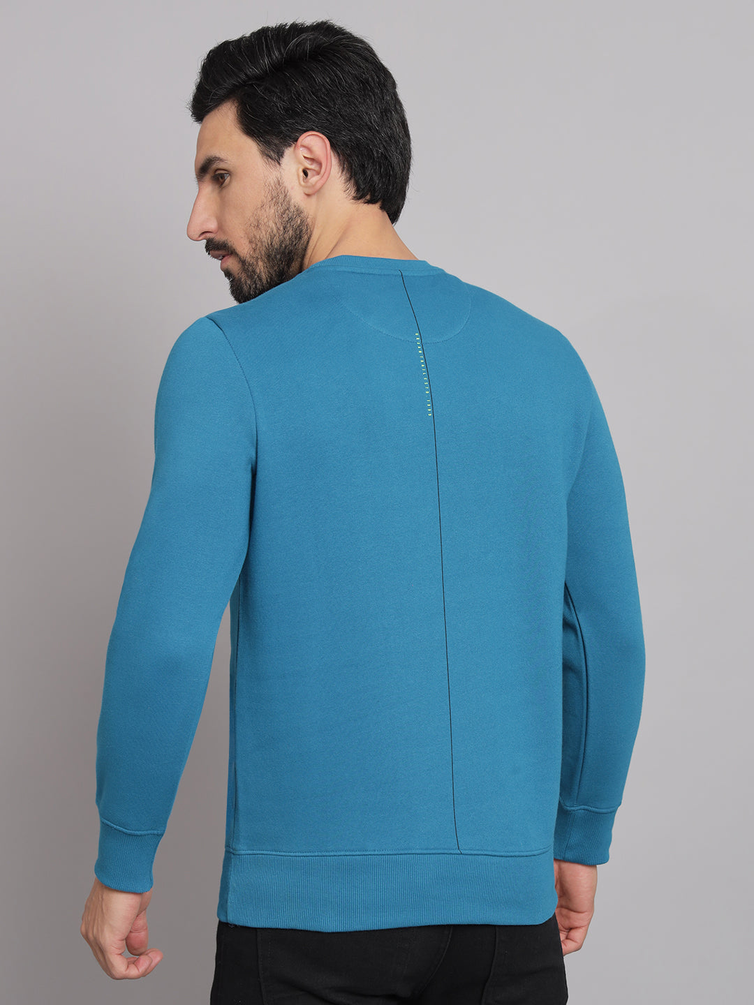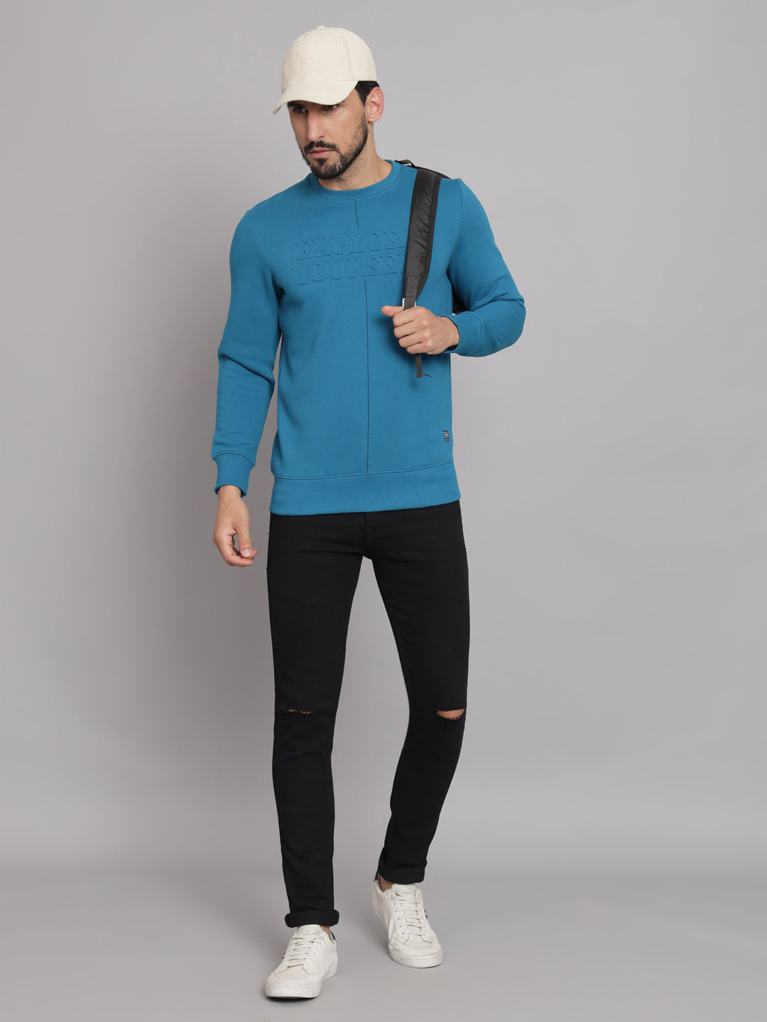 Experience the ultimate in comfort and style with this Ocean Blue Round Neck Sweatshirt for men. It is full sleeves and soft cotton blend fabric creates a warm and cozy sensation against your skin, making it a perfect choice for those cool evenings or laid-back weekends. This sweatshirt is designed to keep you both comfortable and fashion-forward.