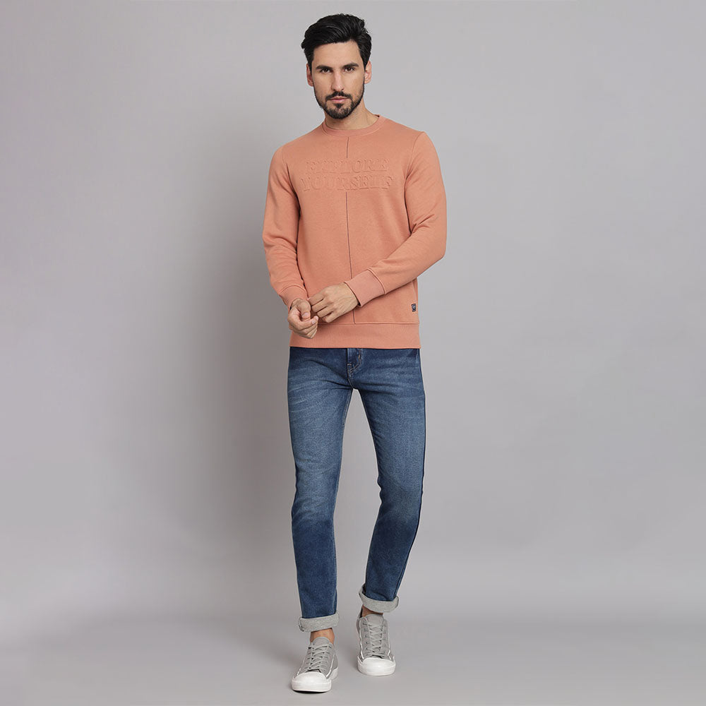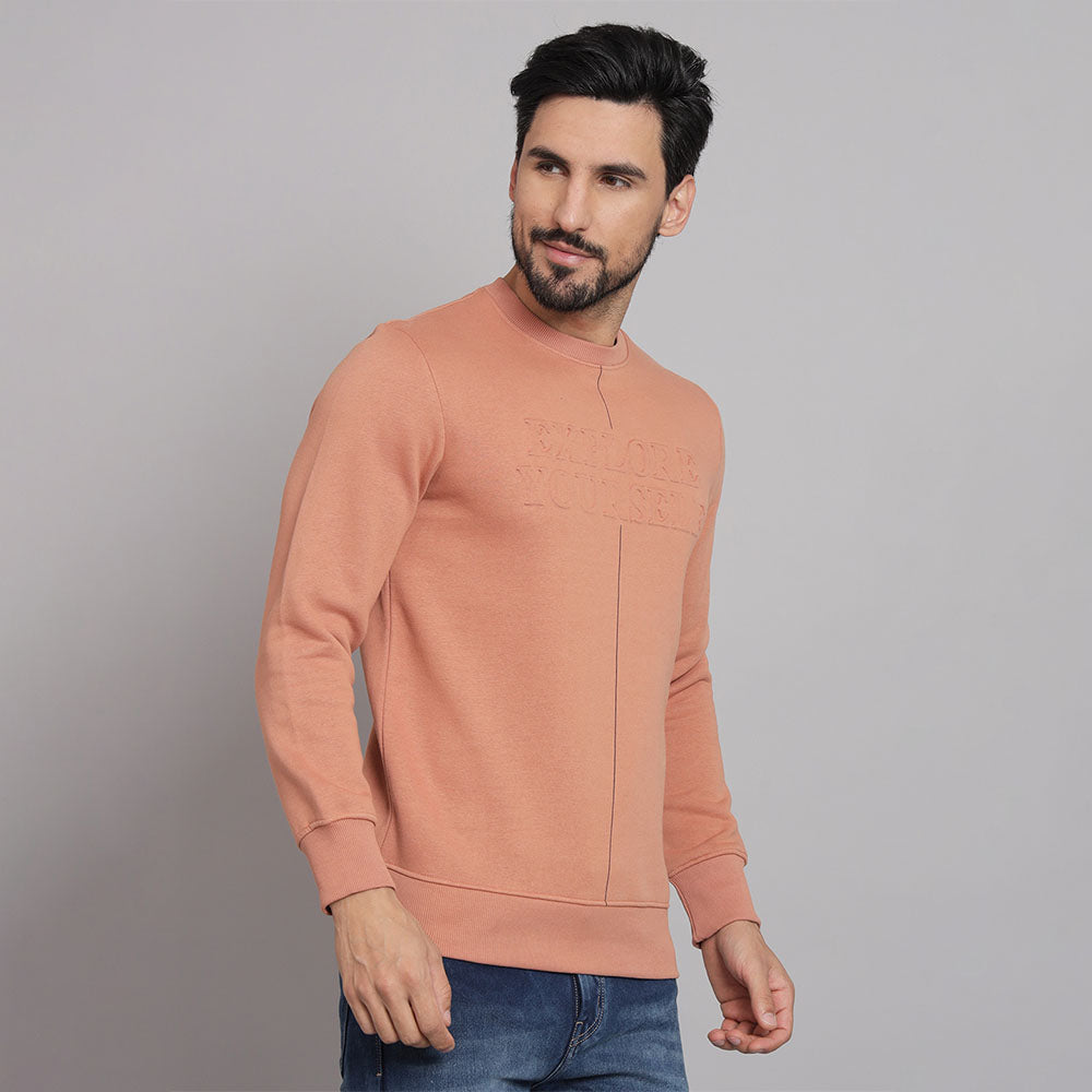 Elevate your winter wardrobe with this men's Peach Round Neck sweatshirt, designed for ultimate comfort and style. Crafted from a premium cotton blend, it features a classic round neck and full sleeves, making it the perfect go-to choice for chilly days.