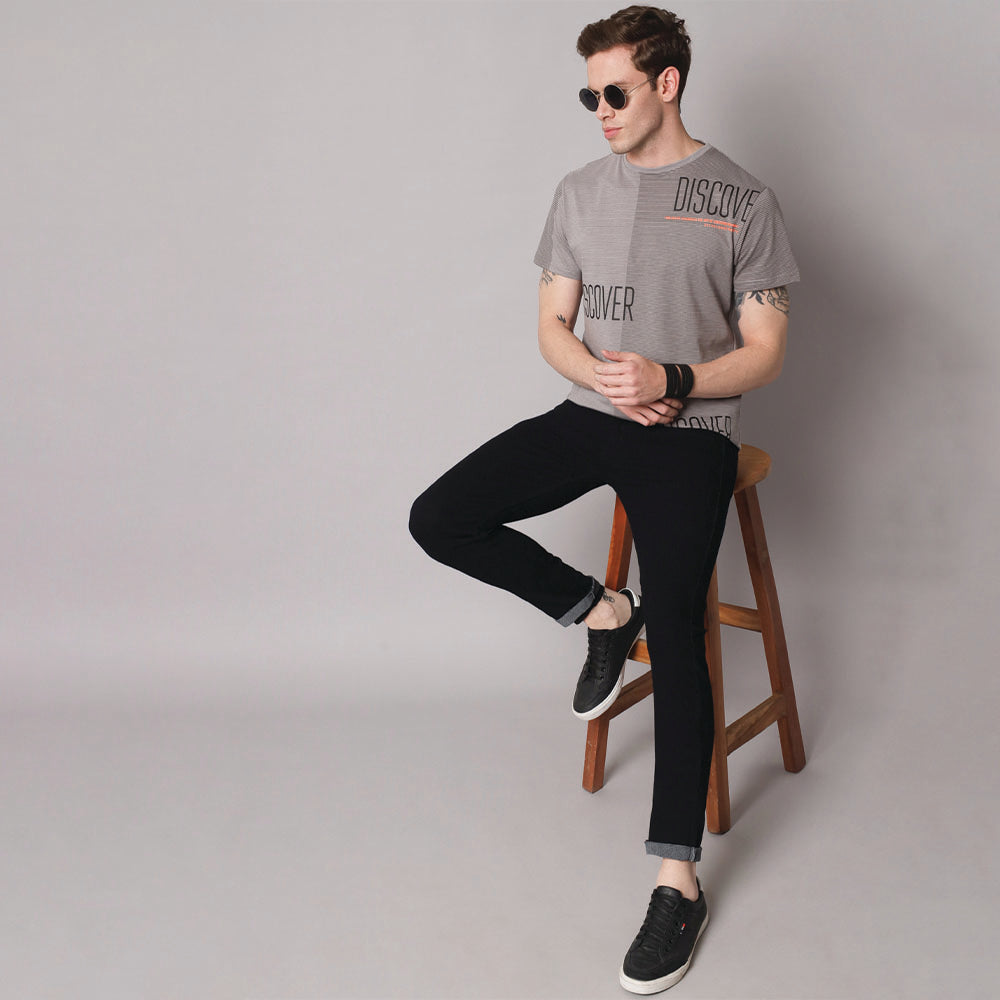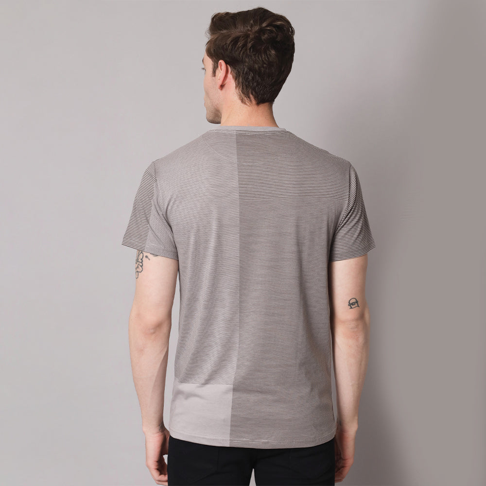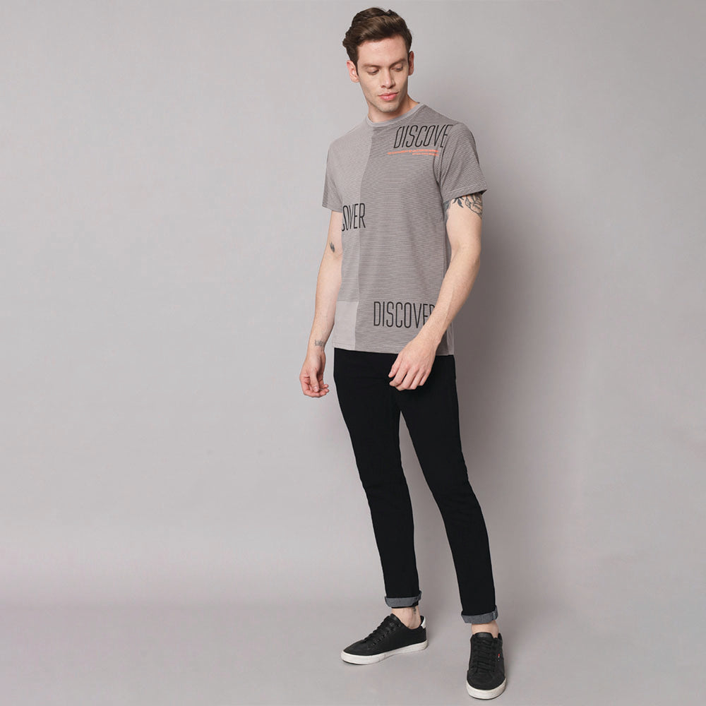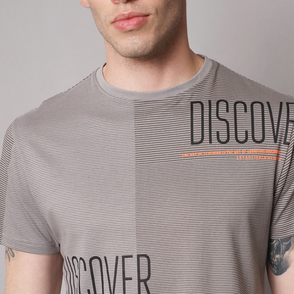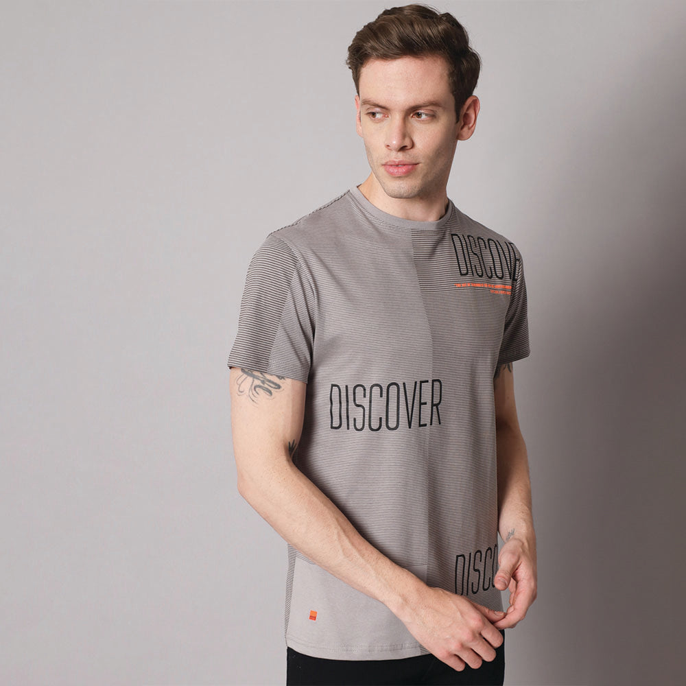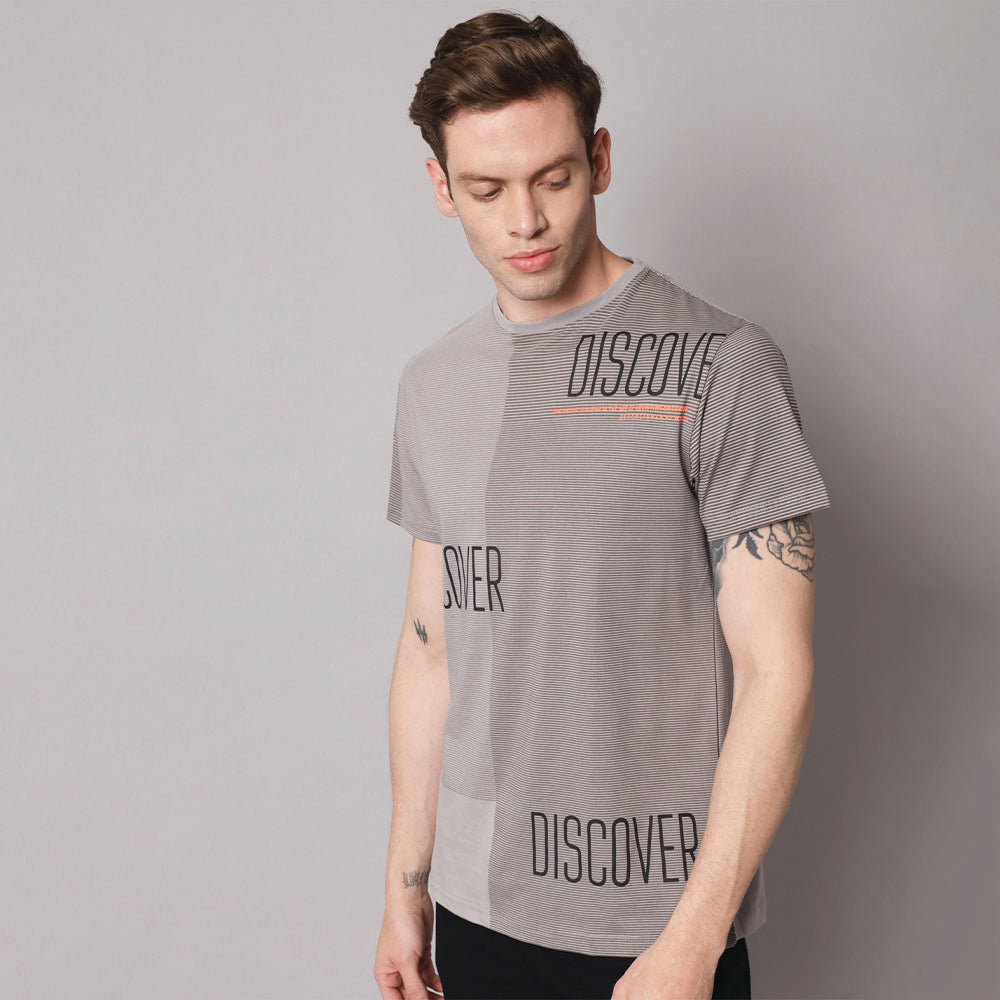Style your wardrobe with this classic half-sleeve Stone Gray Round-neck T-shirt. This well-fitted, comfortable tee is stitched to perfection. Wear it to a casual workday, party, or for a night-in with your friends.