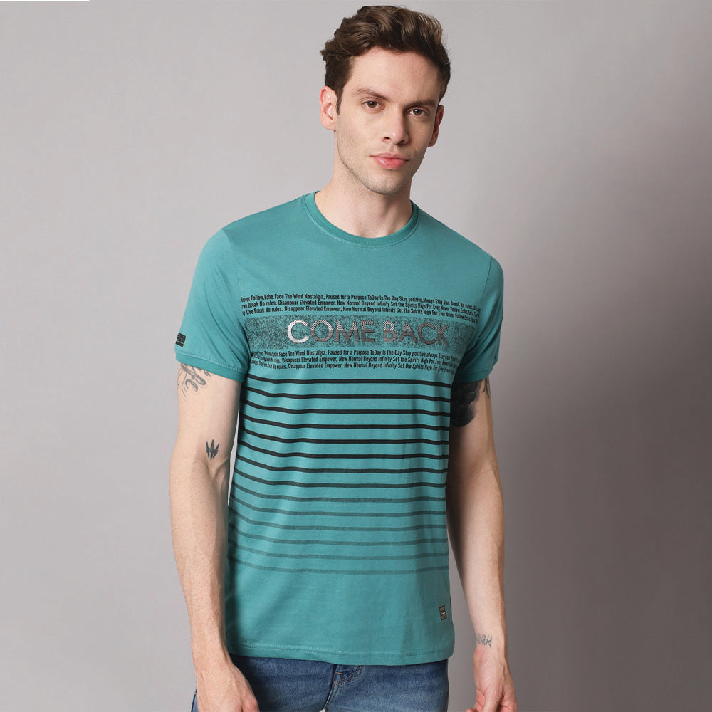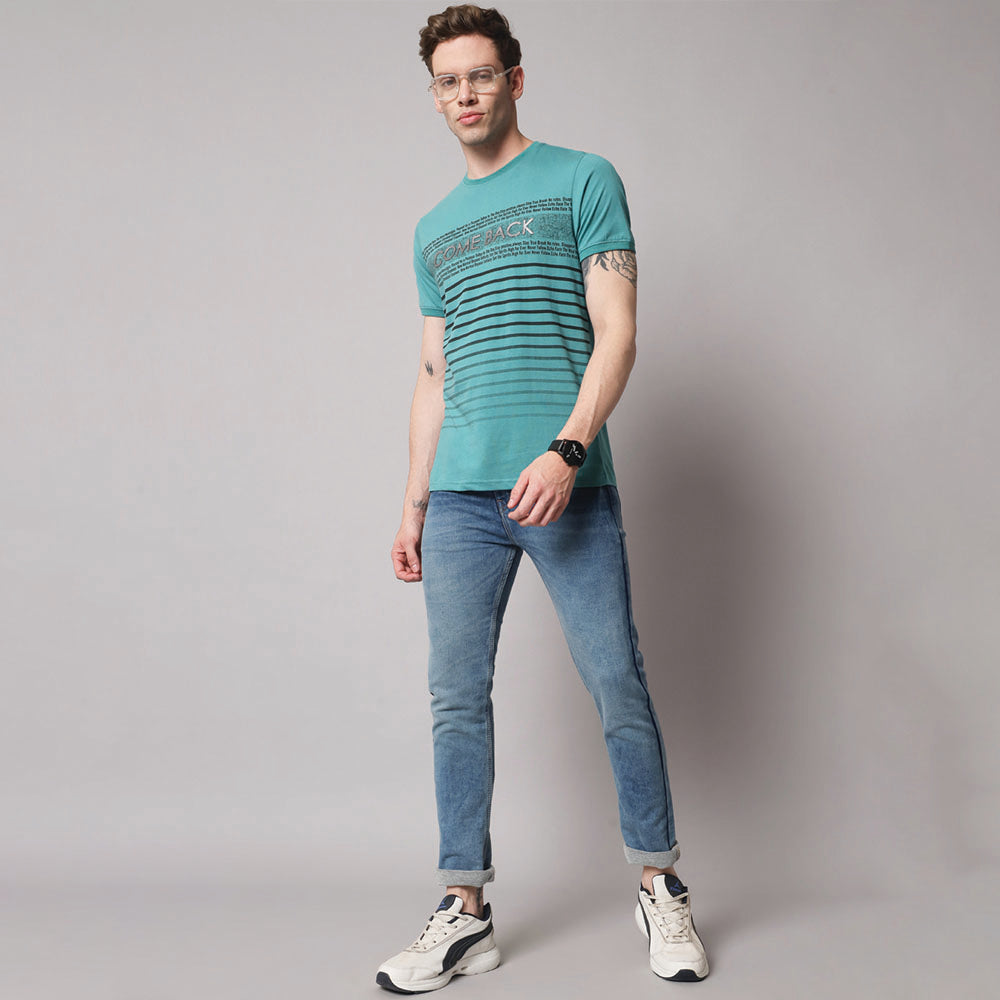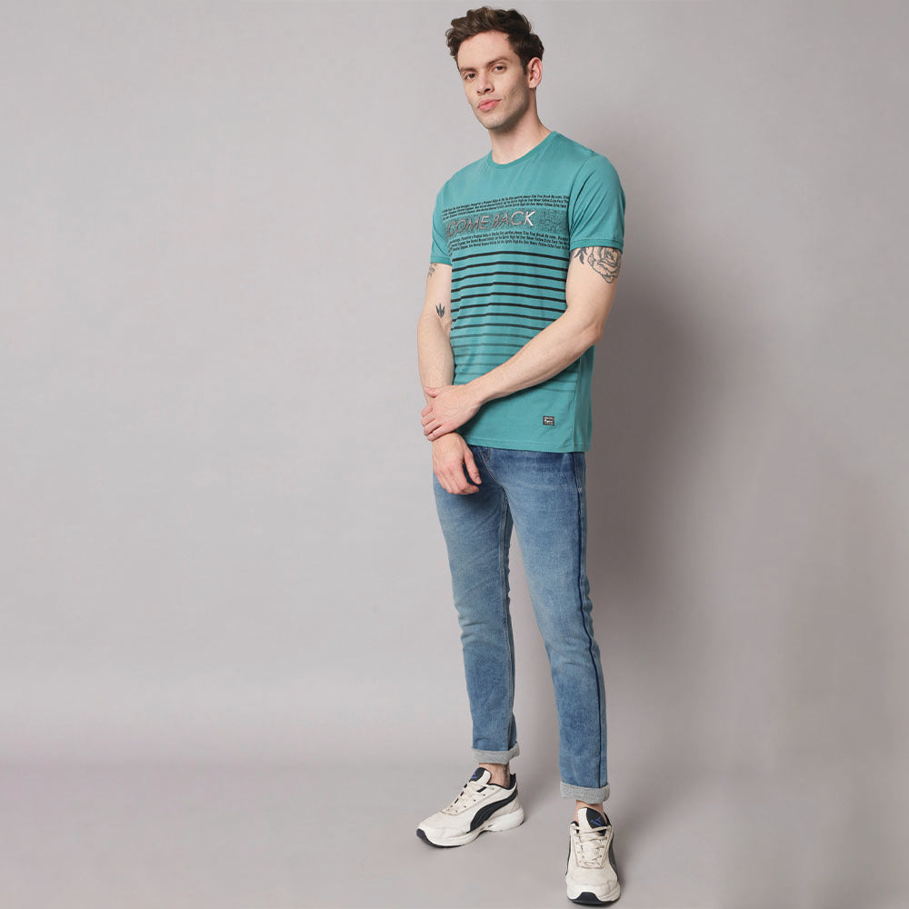 Tiffany blue Stripers Round Neck T-shirt